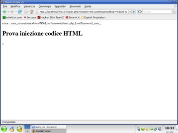 https://localhost/md107/user.php?module=NS-LostPassword&op=<h1>Prova iniezione codice HTML</h1>