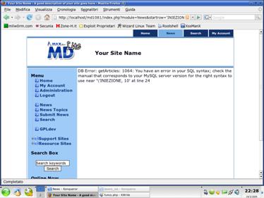 Questa vulnerabilità è un Cross Site Scripting di primo livello che ci consente di "sniffare" l'MDPROSID (il Sessioni Id) dell'utente amministratore in modo da poterlo inserire nel nostro browser. A quel punto, quando il sistema riconoscerà il Session Id, ci farà entrare con i privilegi dell'amministratore senza chiederci alcuna credenziale d'accesso.