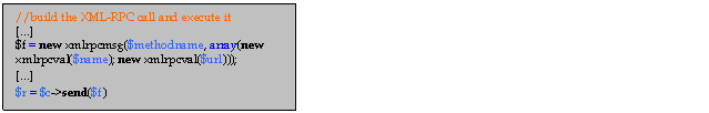 new xmlrpcmsg($methodname, array(new xmlrpcval($url)); $r $c->send($f)