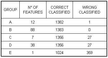 I risultati ottenuti ci lasciano pensare che i gruppi di features C, D ed E sono quelli che possono essere già scartati, mentre il gruppo A e il gruppo B possono passare alla fase successiva e la scelta di quale gruppo utilizzare sarà effettuata su delle considerazioni a granularità più fine.