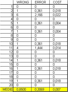 Come costo di classificazione da fornire pensiamo sia ragionevole fornire una media dei costi ottenuti nella tabella di sopra e quindi il COSTO STIMATO = 0.007