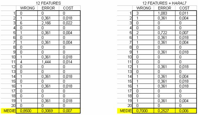 Avendo appurato che la feature Haral7 potrebbe essere discriminante abbiamo testato la rete sul nuovo insieme di features ottenuto aggiungendo la nuova feature alle 12 precedenti. I risultati ottenuti sono i seguenti: