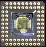 Il processore 80286 a 10-MHz nel suo package PGA ceramico da 68-pin. Anche l'80186 esiste in versione PGA. Notare la "A" anteposta al nome 80286. Questa lettera contraddistingue quasi tutti i processori Intel (e AMD) con package PGA ceramico (alcuni, tuttavia, utilizzano la denominazione C80286 o CG80286 per specificare versioni particolari del circuito interno, con funzioni avanzate, e ciò vale anche per gli altri package usati). Notare, a destra, il circuito interno del processore