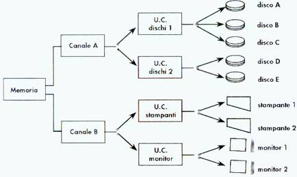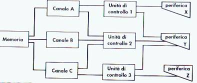 Molte periferiche sono dotate di una untià di controllo che ne regola l'attivita, in modo da ottenere una soluzine semplice ede econimica. In pratica più periferiche uguali vengono accumunate ad un'unica unità di controllo e quindi il canale non è più connesso direttamente ai disposotivi, ma deve selezionere l'uintà di controllo a cui il dispositivo è associato (figura 3.3).