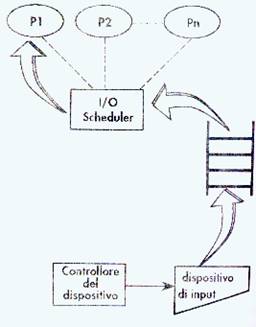 A questo punto entra in gioco la IO Scheduler il cui compito principale è quello di risolvere le contese tra i processi, stabilendo una gerarchia tra le richieste inoltrategli, cioè i dispositivi con i relativi PATHS. La IO Scheduler ha dei concetti uguali a quelli del Job Scheduling tranne che la possibilità di interrompere e riprendere l'operazione di IO. I processi richiedenti mantengono le stesse priorità assegnategli dal Process Scheduler in modo che un Job con alta priorità avrà la stessa priorità anche sulla risorsa. A questo punto si può allocare la risorsa, quindi attiveremo il driver del dispositivo, attivando anche il canale. Adesso avrà luogo la IO fisico e poi la deallocazione della risorsa.