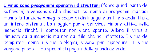 Un virus ha la capacità di moltiplicarsi all'interno del computer creando grandissimi disagi nei collegamenti in rete e nei sistemi come quelli delle banche.