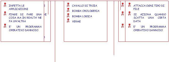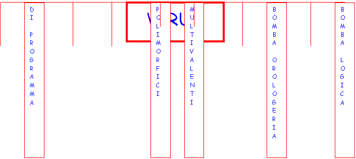 Caratteristiche: Questo virus finge di svolgere date operazioni ma, in realtà, non fa altro che distruggere i file legati ai programmi che ha infettato