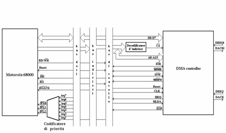 Sulla destra dello schema in fig.1 sono mostrate le linee fisiche che collegano il DMA controller a delle periferiche.