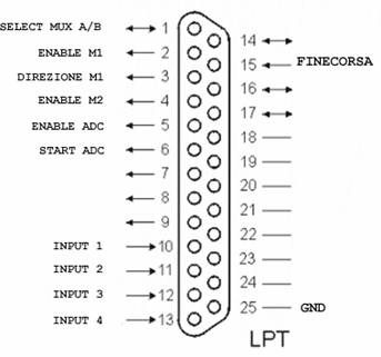 FINECORSA:piedino che, portato a massa (ossia quando tocca il cavo di fine corsa), avverte il programma, che di conseguenza ne blocca il movimento orizzontale.