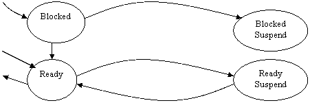 Un processo pronto deve avere l'immagine in memoria primaria. Grazie alla Memoria Virtuale parte dell'immagine può stare nella memoria primaria e parte nella memoria virtuale. Se la porzione in memoria primaria è blocked non la stiamo utilizzando bene; pertanto conviene che le porzioni di immagine che sono blocked siano caricate in memoria virtuale (memoria di massa). Ciò viene fatto dallo Scheduler di Medio Termine tramite lo swapping dei processi. Al precedente schema dobbiamo aggiungere dunque due stati:
