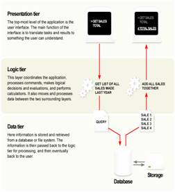Con particolare riferimento ad una architettura client-server, in generale si può descrivere una situazione tipica in cui c'è una serie di macchine client (non stupide) su cui gira parte di una applicazione, connesse attraverso una rete LAN o WAN ad una macchina server, su cui gira la restante parte dell'applicazione, che si occupa di gestire le risorse condivise dai client. Naturalmente la sofisticazione di una tale architettura cambia a seconda di come l'applicazione viene partizionata tra le macchine client e server. Una multi-tier architecture (o più tipicamente three-tier architecture) è una architettura multistrato nella quale si usa generalmente distinguere la presentation logic (o presentation tier) - l'interfaccia utente, la business logic (o logic tier) - ovvero gli algoritmi funzionali che gestiscono lo scambio di informazioni tra l'interfaccia utente e un database - e la database logic (o data tier) - modulo di accesso e gestione dei dati (tipicamente un DBMS), memorizzati generalmente su uno storage a sua volta indipendente. Orbene, la soluzione di partizionamento più banale che si possa concepire consiste nel mettere sui client la sola presentation logic e tutto il resto sul server, oppure (in modo ancora più drastico) è possibile concepire i client come semplici emulatori di terminali e tutto viene gestito dal server: ambedue appaiono immediatamente soluzioni insoddisfacenti perchè le macchine client sono sottoutilizzate.