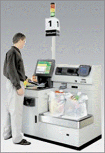 Una cassa automatica per il self checkout (scannerizzare, imbustare e pagare da soli).