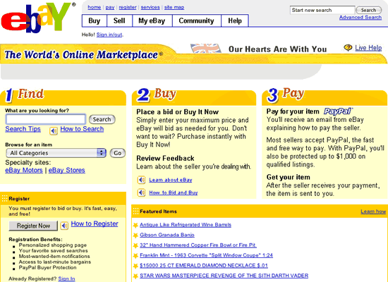Il colosso eBay e' approdato in Italia il 15 Gennaio del 2001. Preso il dominio 'eBay.it', la versione italiana della multinazionale americana ha fatto registrare in pochi giorni 300mila utenti iscritti, per oggetti venduti pari al valore di circa 17 milioni di dollari. Una buona base di partenza, che non fa altro che presagire il successo tutto tricolore del 'mercatino on-line': con una crescita media annua del 160% (nel primo trimestre del 2005 la percentuale ha sfiorato il 200%), nel 2004 gli utenti di eBay.it erano 1 milione e 300mila, con compravendite che avevano toccato il giro d'affari di ben 234 milioni di dollari. Cifre impressionanti, contando che lo spirito di eBay e' rimasto praticamente inalterato negli anni: il sistema della community resta invariato anche a livello globale, e il contatto diretto tra acquirente e venditore e' quello dei tempi del primo portale.