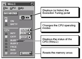 Dopo l'avvio del programma, all'utente si presenta una interfaccia che rappresenta la CPU del PLC S7-300 e che permette di gestire tutte le operazioni gestibili dal controllore WinLC: