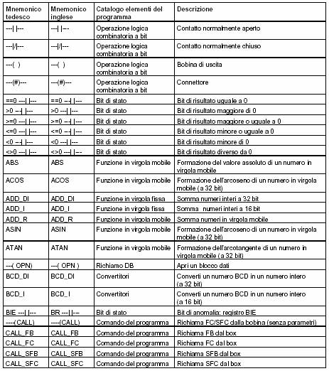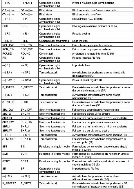 Il linguaggio a contatti (o Ladder Diagram) prevede l'utilizzo degli elementi contatto aperto, contatto chiuso e bobina, tipici degli schemi di controllo a relè elettromeccanici. Sono inoltre previste delle istruzioni per realizzare funzioni di temporizzazione, conteggio, operazioni aritmetiche, ecc.