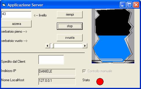 Il primo elemento di questo vettore viene mandato alla casella text_arrivato che lo riconosce come stringa di controllo, il secondo viene sottoposto al test di livello valido: se è compreso fra 0 e 100, si riconosce che il client intende impostare un nuovo valore del livello e quindi viene assegnato alla variabile conteggio, altrimenti viene ignorato.