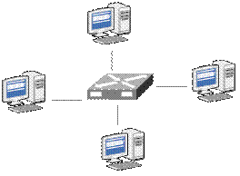 Lo switch: è un dispositivo in grado di instradare i pacchetti di dati in maniera point to point. Questo è possibile perchè lo switch, al suo interno, ha una tabella di tutti gli indirizzi delle schede di rete collegate e quando gli arriva un pacchetto sa chi è il destinatario e lo invia solo a lui.