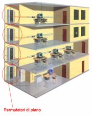 un'architettura a stella con dorsali in fibra ottica. La distribuzione orizzontale