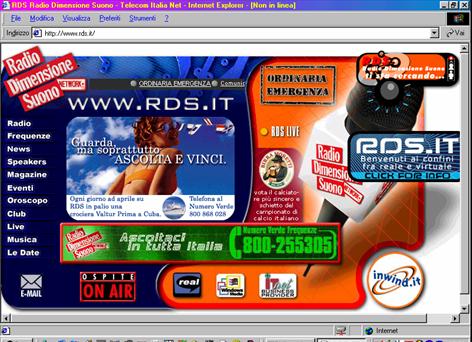 RDS si presenta con una concezione di Home Page opposta a quella di RTL 102.5: infatti la pubblicità prevale sui link interni, rilegati in un frame molto piccolo. Nelle pagine seguenti invece ritorna preponderante l'informazione. Anche RDS punta sull'oroscopo e si caratterizza per la presenza di una stringa di news 24 ore su 24.