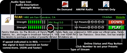 E' una guida alle emittenti radiofoniche italiane e straniere che trasmettono su Internet. La Home Page presenta tre aree principali: una stringa con le notizie 24 ore su 24 inerenti il mondo della musica, gli approfondimenti sugli argomenti in primo piano ed infine il frame principale che contiene link a 'Radio italiane', 'Radio Live', 'Magazine', 'News e avvenimenti', 'Musica' e 'Mp3'.
