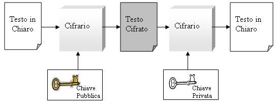 Figura Schema di cifratura e decifratura con chiavi asimmetriche - tratta da [11]