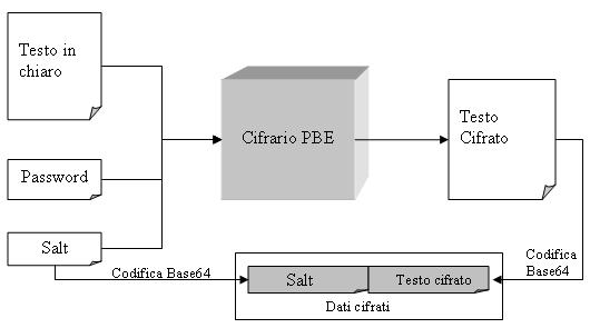 Di seguito è riportato lo schema della cifratura con password mediante tecnica del salt: