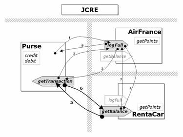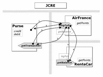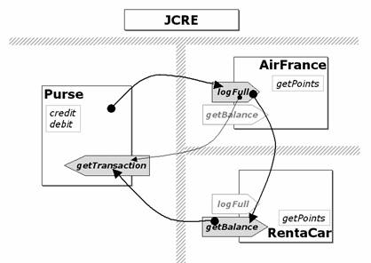 Per rendere ancora più chiaro il significato dell'esempio utilizzeremo, anzichè tre generiche applet, un tipico esempio di Java Card multi-applicativa rappresentato dal borsellino elettronico (electronic purse o più semplicemente Purse) che interagisce con due applet che gestiscono due diverse loyalty (raccolte punti): una applicazione per coloro che viaggiano spesso in aereo (che chiameremo AirFrance) ed una invece che gestisce i punti accumulati presso un noleggio di auto (che chiameremo RentaCar).