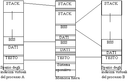 Questi 3 segmenti verranno collocati nella memoria fisica a seconda della tecnica di gestione della memoria adottata. Le tecniche di gestione della memoria che solitamente si associano a UNIX sono due :