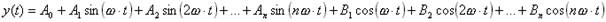 dove ω = 2πf è detta pulsazione o velocità angolare, f = 1/T è la frequenza fondamentale ed An e Bn sono le ampiezze dell'ennesima armonica (o termine), che ha una frequenza n volte più grande della frequenza fondamentale.