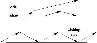 Sezione di un cavo contenente fibre ottiche Le fibre ottiche sfruttano il principio della deviazione che un raggio di luce subisce quando attraversa il confine fra due materiali diversi (core e cladding nel caso delle fibre). La deviazione dipende dagli indici di rifrazione dei due materiali. Oltre un certo angolo, il raggio rimane intrappolato all'interno del materiale.