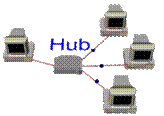 I terminali: i computer che utilizziamo per accedere alla rete e richiedere informazioni La linea di trasmissione: il cavo su cui viaggiano le informazioni (ma non sempre è un cavo) I nodi: computer o dispositivi che indirizzano i terminali verso i computer host Gli host: i computer che contengono le informazioni e restituiscono i dati ai terminali Vi saranno sempre un computer che funge da terminale e un computer che funge da host. Questo vale anche per Internet. I componenti possono essere collegati ai nodi non solo direttamente, ma anche tramite calcolatori di interfaccia o tramite concentratori. Gli elementi identificabili abbiamo visto appartengono a due categorie: Hardware Le schede di rete I cavi di collegamento I dispositivi di collegamento: servono a collegare tra loro i cavi di rete, ove la tipologia di rete lo consenta (ad es. gli hub). Oltre a questi, vi sono gli switch, dispositivi intelligenti in grado di sapere su quale porta si trova il computer a cui abbiamo inviato una richiesta e quindi in grado diminuire il traffico di rete. I router, invece, sono veri e propri nodi di collegamento tra reti. Hanno un proprio software e gestiscono tabelle di collegamento che permettono di sapere qual è la strada per arrivare a un determinato computer e su quale rete questo si trova. Gli Hub e gli SwitchGli hub e gli switch servono a collegare PC, stampanti e altri dispositivi. Gli hub si differenscono dai switch per il modo in cui avviene la trasmissione del traffico di rete. Con il termine 'hub' ci si riferisce a volte ad un componente dell'apparecchiatura di rete che collega assieme i PC, ma che in effetti funge da ripetitore. E questo è perché trasmette o ripete tutte le informazioni che riceve, a tutte le porte. Gli hub possono essere usati per estendere una rete. Tuttavia ciò può produrre una grande quantità di traffico superfluo, poiché le stesse informazioni vengono inviate a tutti i dispositivi di una rete. Gli hub sono adatti alle piccole reti; per le rete con elevato livello di traffico si consiglia un'apparecchiatura supplementare di networking (ad es. uno switch che riduce il traffico non necessario).