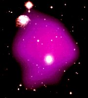 falso colore rosa, una gigantesca nube di gas 'caldo' che emette una debole