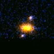 Le frecce arancioni indicano la posizione apparente della galassia distante. Le