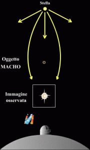 In particolare sono state analizzate sistematicamente le variazioni luminose delle stelle nella Grande Nube di Magellano, una piccola galassia satellite della nostra Via Lattea. In alcuni casi sono state osservate delle variazioni luminose delle stelle, interpretate come dovute a lenti costituite da oggetti invisibili aventi masse come quelle di grandi pianeti, che muovendosi al bordo della nostra galassia intercettano la luce di alcune stelle. Sono stati individuati un certo numero di questi corpi, ma il loro numero e massa danno solo un piccolo contributo alla materia oscura.