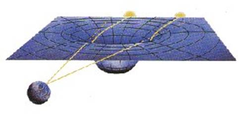 Ogni corpo celeste può essere paragonato ad una pallina su un lenzuolo. Maggiore è il peso e la densità della stessa, maggiore sarà la deformazione che essa provoca nello spazio circostante