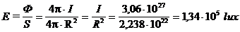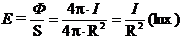 Una sorgente puntiforme di intensità I posta al centro di una superficie sferica di raggio R incide su di essa con un flusso pari a 4pI lumen. L'unità di area di tale superficie viene perciò illuminata da