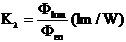 Si definisce a tal proposito il coefficiente di visibilità Kl come il rapporto tra il flusso luminoso ed il corrispondente flusso energetico (in watt) portati da una radiazione monocromatica di lunghezza l