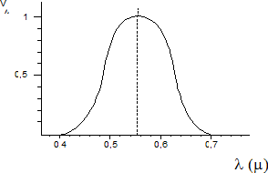 Il primo problema che si presenta è legato al fatto che il nostro occhio non è egualmente sensibile a tutte le lunghezze d'onda ottiche, ma presenta un massimo di sensibilità per la luce di 0,555 m (giallo-verde).