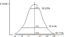 = 0,39894, area totale = 1) in cui i valori estremi (0,4 -