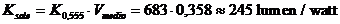 Il valore massimo di tale coefficiente si ha appunto per la radiazione di 0,555m e vale