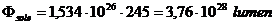 Calcoliamo ora l'emissione ottica totale moltiplicando per la superficie solare (6,087 1018 m2), ottenendo 1,534 1026 watt. Essendo l'energia portata su tutte le lunghezze d'onda del visibile, utilizziamo il fattore medio di visibilità relativa pari a 0,37 per calcolare il fattore di visibilità solare