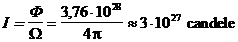 L'intensità di emissione luminosa è la potenza emessa sotto forma di luce entro l'angolo solido unitario (1 steradiante = 1 radiante2).