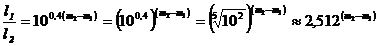La relazione fondamentale della fotometria stellare diventa quindi (relazione di Pogson)