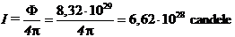 corrispondenti ad un'intensità luminosa di 2,54 1029 candele
