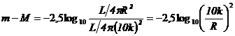 Essendo R/k la distanza della stella espressa in parsec, la relazione diventa