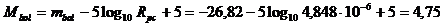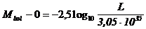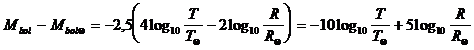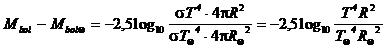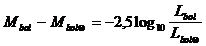 Mentre, ricordando che il punto zero delle magnitudini apparenti bolometriche è 2,56 10-5 erg/(s cm2), la corrispondente luminosità intrinseca bolometrica a 10 parsec sarà