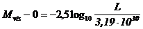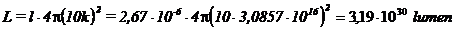 Tenendo poi conto che la luminosità apparente che segna il punto zero della scala delle magnitudini apparenti è 2,67 10-6 lux (lumen/m2), possiamo trovare il corrispondente valore (M = 0) per la scala delle magnitudini assolute, calcolando la corrispondente luminosità intrinseca visuale a 10 parsec