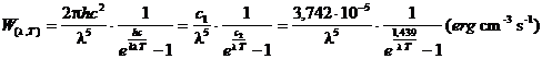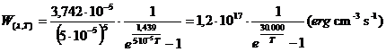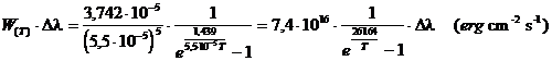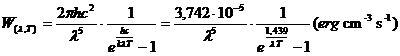 ed in tal caso è dunque possibile, per temperature inferiori ai 20.000 °K, trascurare l'unità nella differenza a denominatore ed utilizzare la seguente planckiana approssimata (approssimazione di Wien, per le basse temperature)