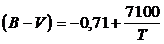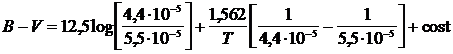 Anche in questo caso la taratura viene effettuata fissando la costante di zero in modo che B-V = 0 per stelle di classe spettrale A0 (T 10.000°K). La costante di zero varrà quindi cost = + 0,5 e la relazione diventa