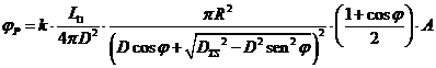 Il flusso luminoso φ che colpisce la Terra proveniente da una sorgente estesa (il disco planetario o il disco solare) è direttamente proporzionale al flusso emesso per unità di superficie w (luminosità unitaria) del corpo emittente e all'angolo solido θ sotto il quale viene vista la superficie emittente da un osservatore posto sulla Terra.